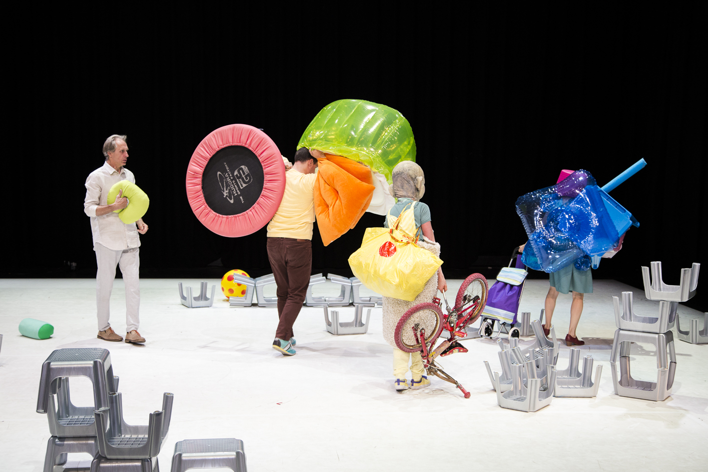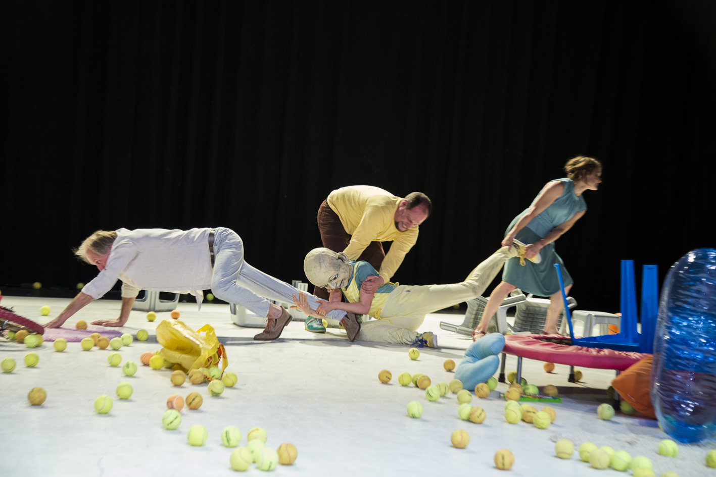 Mit: Carola Bärtschiger, Gloria Iberl-Thieme, Matthias Maat, Stefan Názay Regie/Konzept/Produktionsleitung: Silvia Jedrusiak, Dramaturgie: Peter Wallgram Regieassistenz: Janna Grasemann, Mareike Fiege Choreografie: Christina Flick, Judit Abegg, Musik: Ata Güner Bühne: H2S2 Kostüme: Elisa Pelkmann Maskenbau: Judith Mähler Lichtkonzept: Johannes Sundrup PR: Rita Roring Fotos: Erich Saar Projektbegleitung: Monika C. Müller Dank an: Die Forschungsgruppe (siehe Programmheft) Eine Produktion von: Silvia Jedrusiak