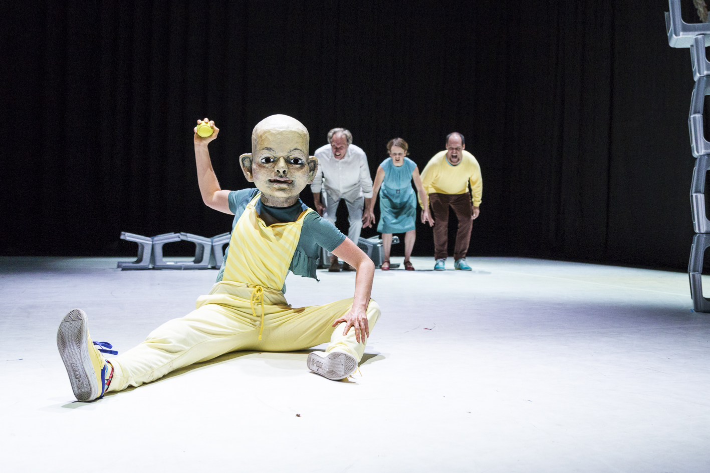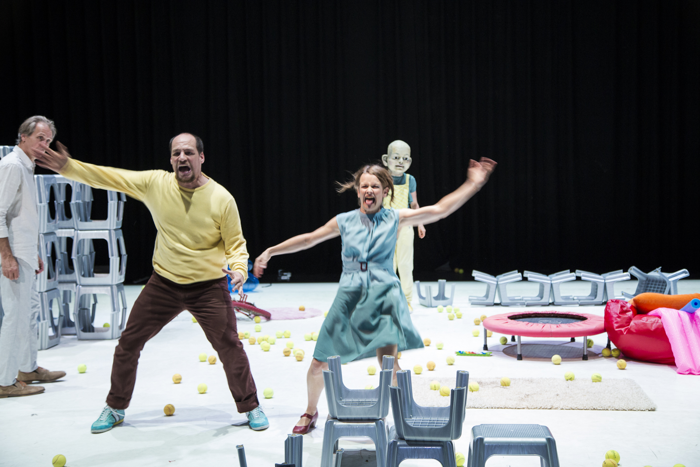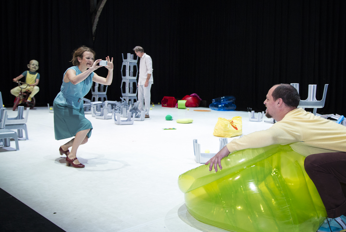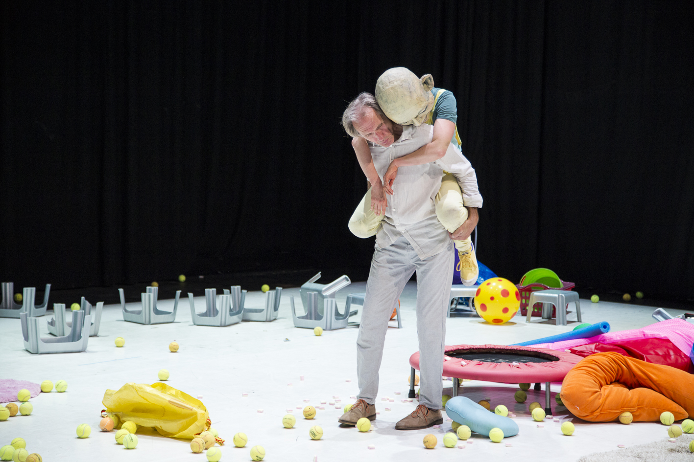 In dieser Inszenierung, die exemplarisch den Blick freischaufelt auf die Ambivalenzen des vielgepriesenen Elternglücks, agieren zwei Physical Theatre-Darsteller, eine Maskenspielerin und ein Schauspieler. Die ELTERSCHAU versucht sich im künstlerischen Kalibrieren des tapferen Weiterliebens, trotz Eingeständnis der eigenen Fehlbarkeit.