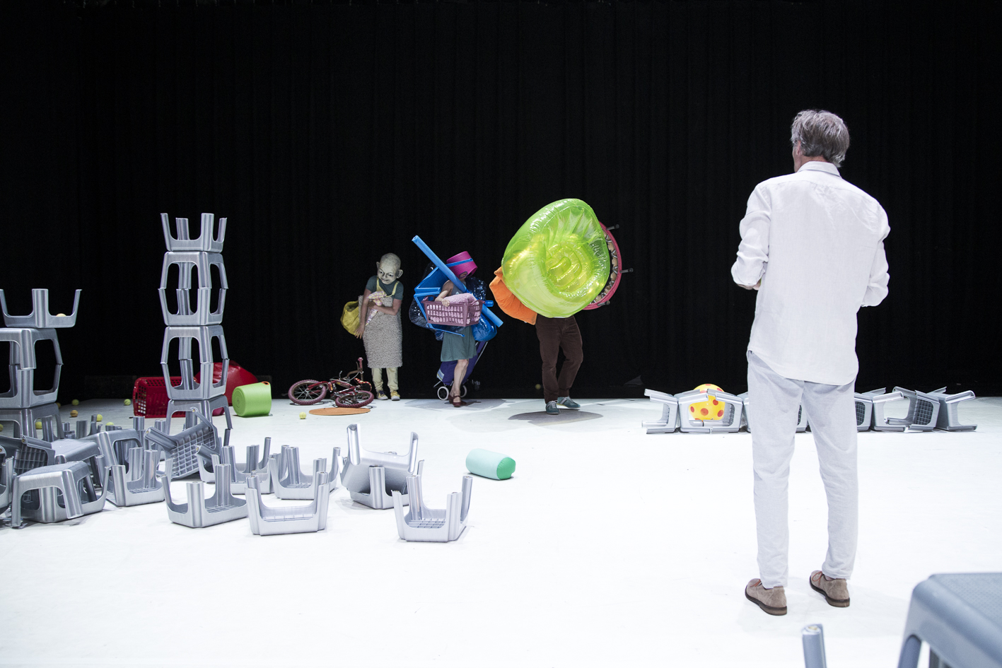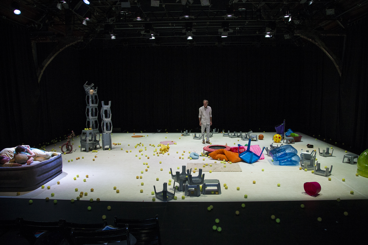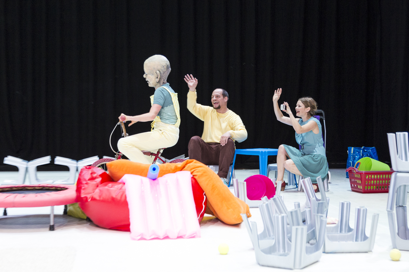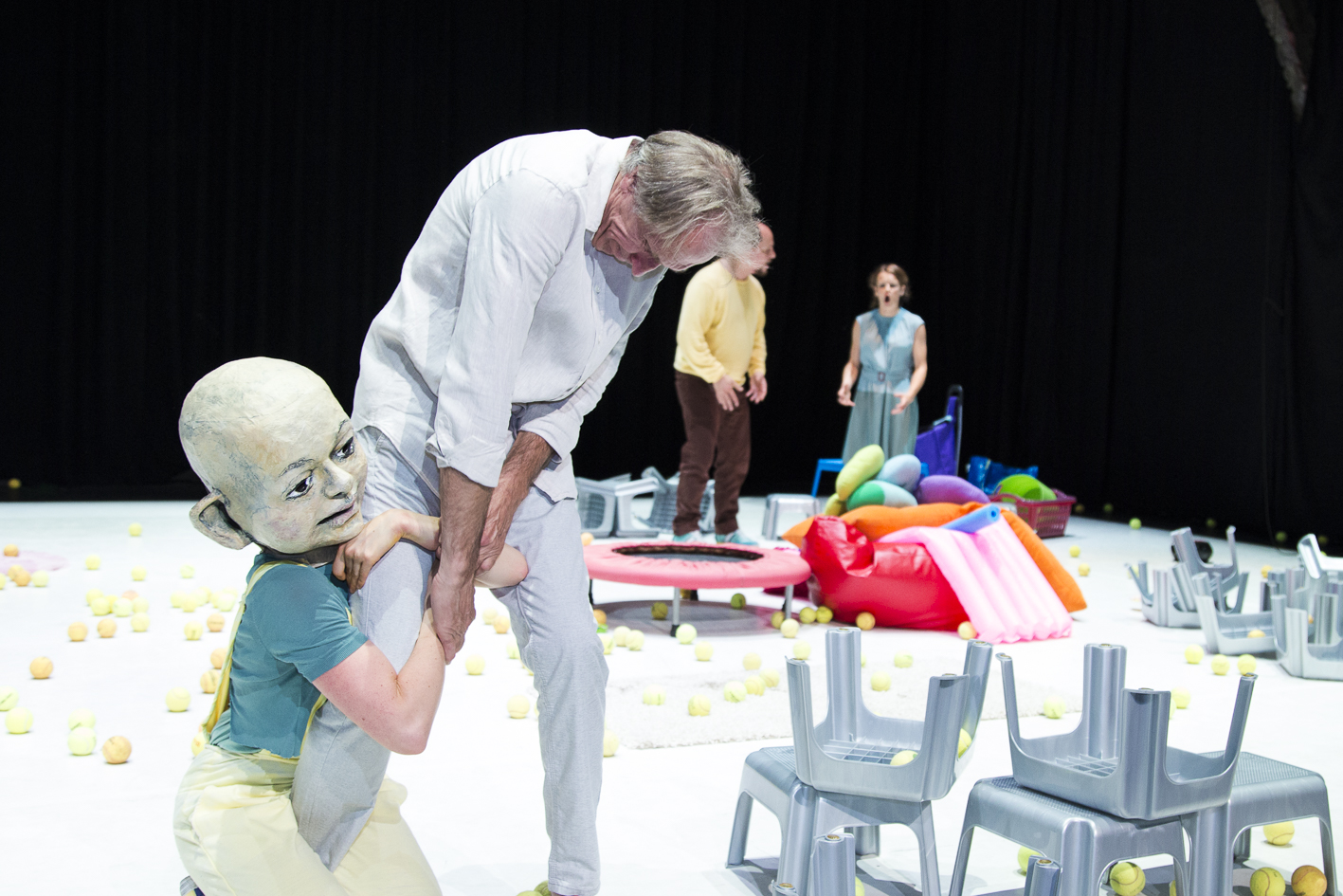 In dieser Inszenierung, die exemplarisch den Blick freischaufelt auf die Ambivalenzen des vielgepriesenen Elternglücks, agieren zwei Physical Theatre-Darsteller, eine Maskenspielerin und ein Schauspieler. Die ELTERSCHAU versucht sich im künstlerischen Kalibrieren des tapferen Weiterliebens, trotz Eingeständnis der eigenen Fehlbarkeit.