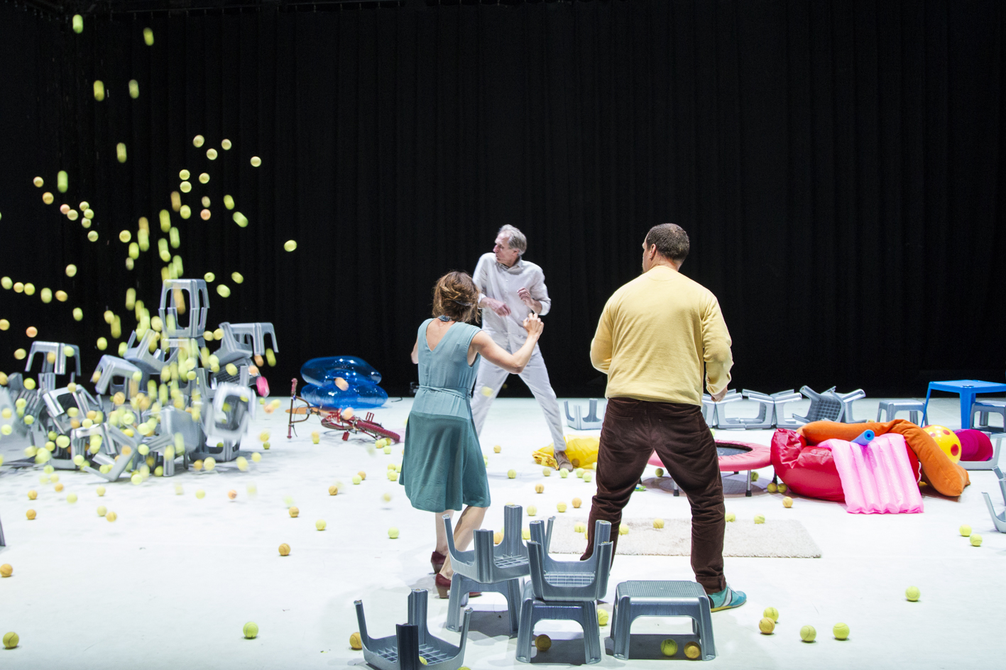 ein polychromes Triptychon aus Theaterstück, Ausstellung und Fotografien